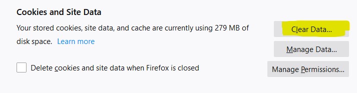 Scroll down to Cookes and Site Data, then click on 'Clear Data'
