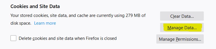 Scroll down to Cookies and Site Data then click on Manage Data'