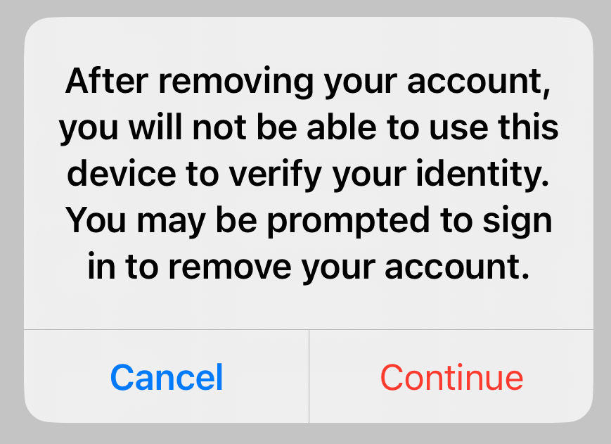 On the following screen, select the gear in the top right to open the settings. Then click remove account, then continue.